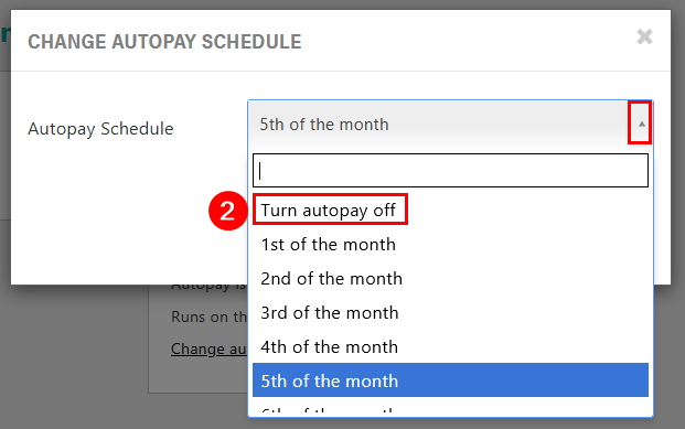 2.) To disable autopay, select "Turn autopay off." To change your billing date, simply select any day before the 16th for all future invoices.